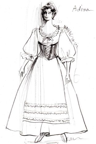 仕事の合間に農民達が楽しそうに歌い、木陰ではアディーナが本を読んでいる。彼女に恋焦がれるネモリーノは彼女を見つめながら歌う〈アリア:なんと美しく、なんと可愛い〉。突然笑い出すアディーナに、字の読めない農民達はそんなに面白いなら読んで聞かせてくれとせがむ。彼女は楽しそうに本を読んで聞かせ〈アリア:美しいイゾルデにトリスタンは恋焦がれました〉、「こんなに効く惚れ薬があったらいいのにね」と皆と歌う。そこへ小太鼓と共にベルコーレ軍曹と小隊がやってくる。彼は村娘の中で一際目立つアディーナにエレガントに口説きだす〈アリア:気取ったパリスのように〉。まんざらでもなさそうなアディーナに彼はいきなり結婚を迫るが、彼女は簡単には承諾しない。ベルコーレと兵隊たちは街の広場に休みに行く。村人たちも仕事に出て行き、ネモリーノとアディーナだけが残る。もじもじといつものように愛を打ち明けるネモリーノにアディーナは適当にからかうが、心の底ではそんな彼を好ましく思う。